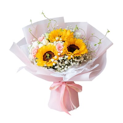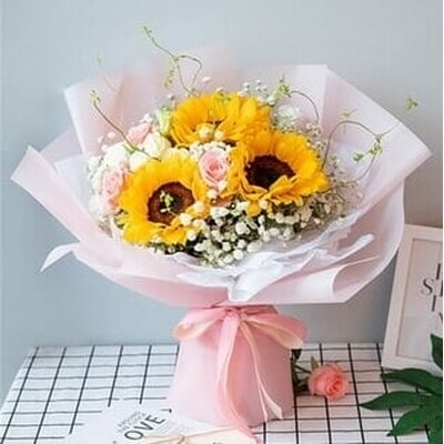 名 稱幸?;▋?(3朵向日葵、9朵粉佳人玫瑰花束)