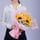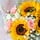 花 材3朵向日葵、9朵粉佳人玫瑰搭配桔梗、滿天星等配花搭配