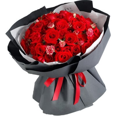 花 材紅玫瑰51枝,多頭小玫瑰搭配