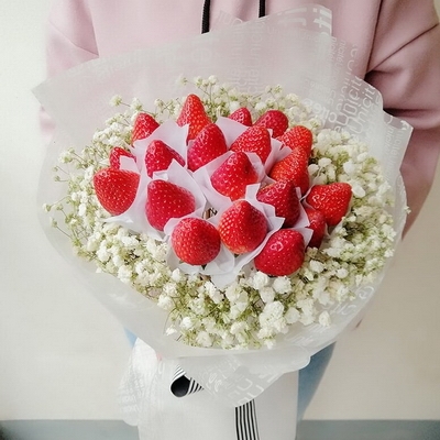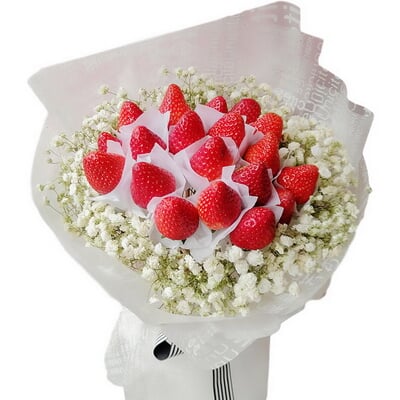 花 材19顆精選新鮮草莓,白色滿天星外圍一圈
