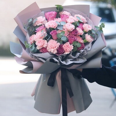 粉色康乃馨紫玫瑰混搭花束