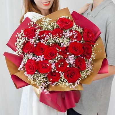 19支紅玫瑰,粉色+白色滿天星豐滿