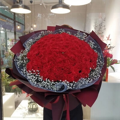 花 材66支紅康,搭配適量的滿天星外圍