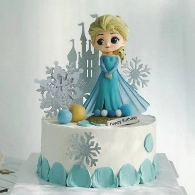 內(nèi)層蛋糕胚+新鮮奶油疊加,新鮮果肉夾層,表層奶油裱花、艾莎公主,城堡插件等裝飾