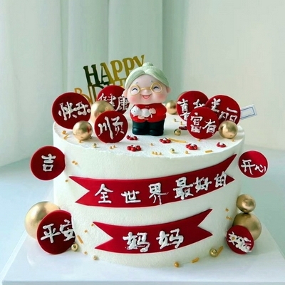 翻糖水果蛋糕,新鮮水果夾心,1個壽星婆,翻糖皮祝福語等搭配